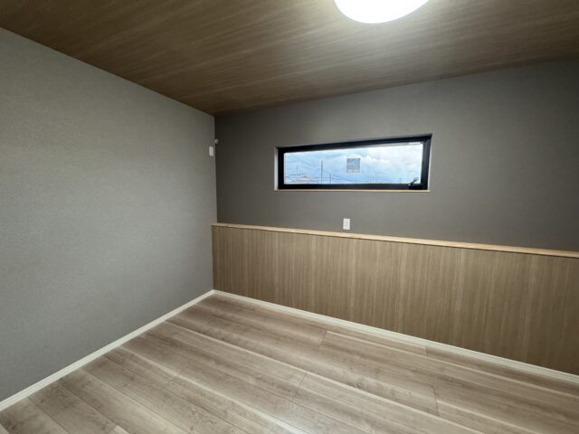 一方の子世帯は、近年流行りのグレージュを使った内装材を使用しました。